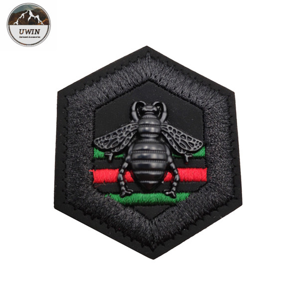 Bumble Bee Black Custom Embossed Leather Patches Washable With Sew On Backing Images |